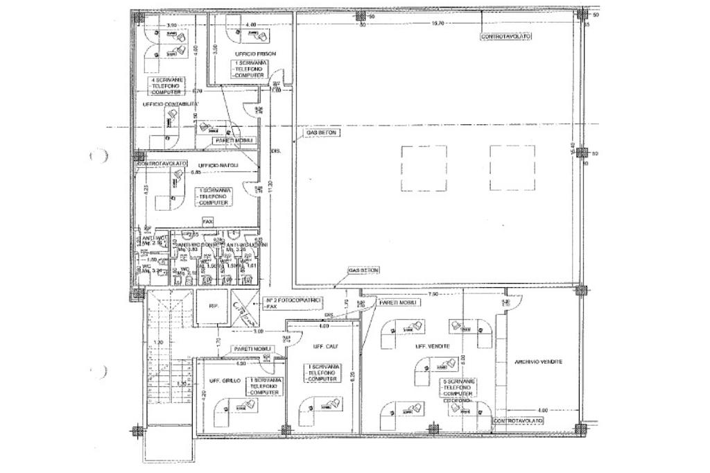 Il piano soppalco di circa 400 mq è attualmente adibito a magazzini di 200 mq e uffici di 200 mq.