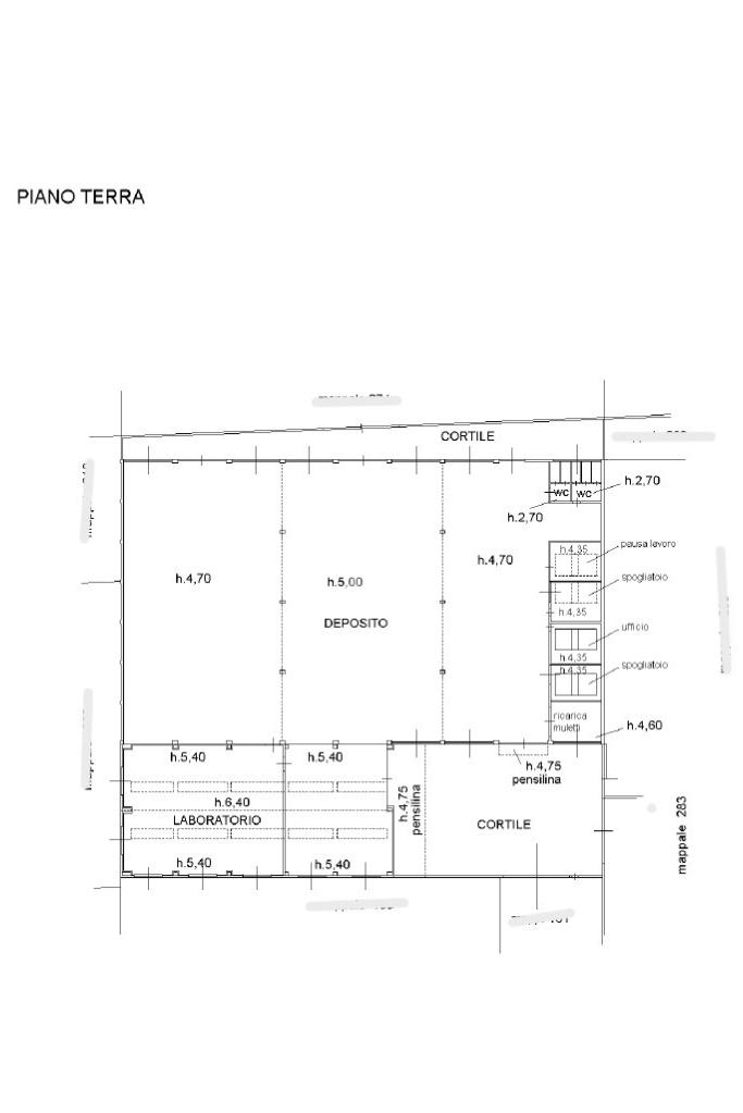 Capannone di mq2000 privo di divisioni interne con aree cortilizie complessive di 460mq.