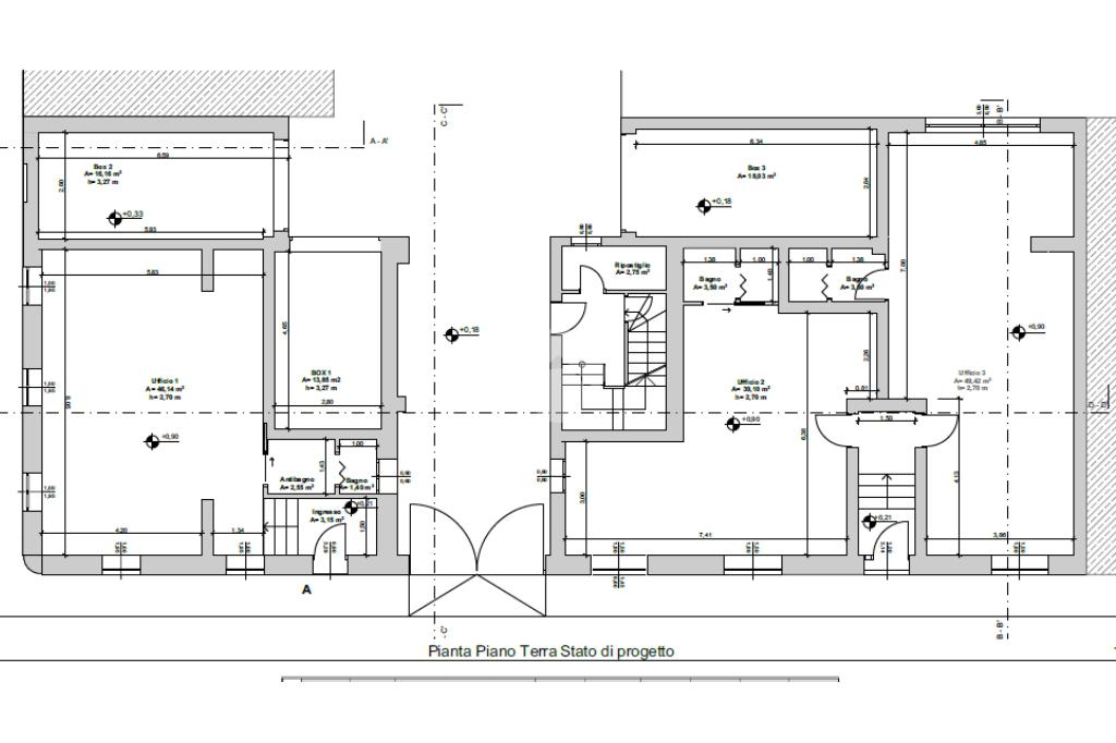 Le unità, situate al piano terra con destinazione d’uso ufficio, sono disponibili in diverse metrature, da circa 50 a 70 mq, ideali per studi professionali, attività direzionali o sedi operative.